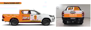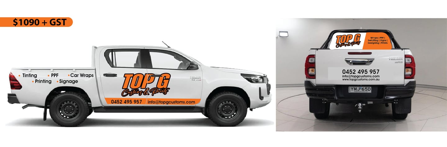 Partial & sil wrap on both sides + 1x big logo for each side + services on both sides & One way vision for the rear